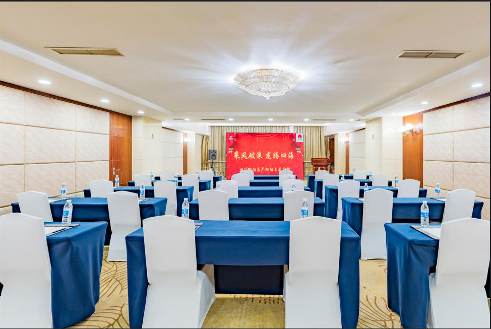 The rose hall area 90 square meters, the length 14 meter, the width 7 meter, the height 2.5 meters, may simultaneously hold 60 people